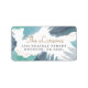 Contemporary holiday sticker with a personalized address on an abstract blue paint strokes background.