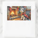 Cesky Terrier Fireplace with Christmas Lights Rectangular Sticker