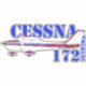 Artistic illustration of a Cessna 172 Skyhawk featuring striking blue text. Ideal for aviation enthusiasts and promotional materials. The light aircraft is highlighted in a unique, artistic style.