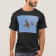 My 11 yo wore adult XL (5’7” 165#). The 8yo is small framed. She wore adult small and tied it in the back. Grandma wore adult large with long sleeve shirt underneath. Tall girl adult medium. Dark haired male adult large. Good quality dark Heather gray, Gildan brand shirt. -it was next up from basic choice and cost about $20 per shirt. Not too thick or thin. Washed and dried well, no major shrinkage. Not see-through. Can wear a bra under it fine. Screen print is just as shown and well done, front and back.