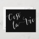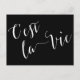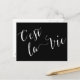 A carefree design with the French text "C'est la Vie" (such is life, or that's life) spelled out with calligraphy. Shown here with a black background, you may change the background color to the color of your choice by selecting the "Customize It" button. Darker colors work best to contrast with the white text.