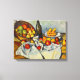 Cezanne The Basket of Apples canvas wrap. Oil painting on canvas from 1894. Paul Cezanne was a master still life painter and The Basket of Apples is his most famous work. The painting features a wine bottle, plate of bread, and whicker basket full of red, green and yellow apples on a white table cloth. A great gift for fans of Cezanne, post-impressionism, and kitchen prints.