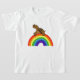 Fun cartoon box turtle climbing on a rainbow shirt.