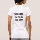 My overall review is that the T-shirt is nice, it fits true to size however the font is significantly smaller than advertised and you can't read it. The printing is unreadable and there is a strain to read it. It does not look like the advertised product. Maybe the shirt color is darker or a larger more visible font should have been used. Photos with and without flash and font is barely legible.