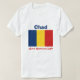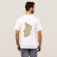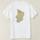 An editable title and slogan accompanies the blue, yellow and red vertical bands of the Chadian flag on the front of this t-shirt. The back displays a detailed map of Chad.