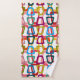 This towel set has a mid-century modern design of rounded triangles in rows.