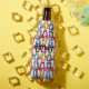 This bottle cooler has a mid-century modern design of rounded triangles in rows.