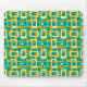 This mouse pad has a mid-century modern design of rounded rectangles with ovals inside in retro colors of turquoise, teal, off-white, and gold. If you want the same design with different colors, message me.