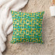This throw pillow has a mid-century modern design of rounded rectangles with ovals inside in retro colors of turquoise, teal, off-white, and gold. If you want the same design with different colors, message me.