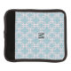 Blush chain pattern on a light blue background with custom monogram in sans serif font.