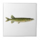 The chain pickerel is featured on this kitchen tile. This missle-shaped fish is related to muskellunge and northern pike. Although smaller in size than their relatives, chain pickerel hunt in much the same manner. The chain pickerel is named for the unique pattern of markings which appears along its flanks.