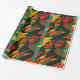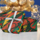 Abstract design in red, green and yellow tones with denting shapes and dynamic textures that evoke energy, strength and movement. A vibrant, contrast-filled pattern, perfect for wrapping gifts in a bold, alternative, and modern style
