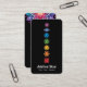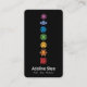 Simple design with the chakra energy points in a vertical line on the front of the card, with a colorful mandala on the back.