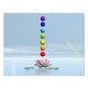 Colorful spheres for chakras upon beautiful lily flower and water by day with rainbow