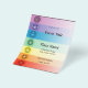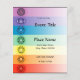 A graphic design of the seven chakras on a 4.5 x 5.6 event flyer. The flyer has text templates for your personalization, and the background color is customizable.