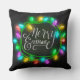 Chalk Drawn Merry and Bright with Lights Throw Pillow