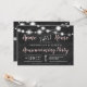 Rustic lights home sweet home housewarming party with white string lights, modern elegant typography, and white key on a rustic black chalkboard. Celebrate your new home in style.