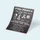 Chalk and vintage style Free photos flyers that is perfect for events that have a photo booth. Display this sign near your photo booth. Photo booth directions or photo booth instructions done in a classy vintage design. Sign shows guests to pick a prop, pose, smile and snap a photo. Perfect for weddings, dances, proms, anniversaries, showers, birthdays, Bar Mitzvahs, Bat Mitzvah, Quinceañera, corporate parties, fundraisers, picnics, charity events, carnivals, street fairs and more. Great advertising for realtors, businesses, corporations, churches and more.