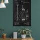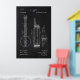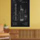 A technical patent diagram of an invention for a new style of banjo dated 1896 which has been designed for wall art on a chalkboard background.
