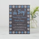 Chalkboard Blue Boy Paw Print Virtual Baby Shower Invitation