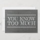 "You Know Too Much." "Will you be my Maid of honor?" Funny proposal cards in a modern chalkboard typography style. Feel free to change "Maid of honor to "Matron of honor" or "Bridesmaid".