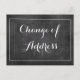 Chalkboard typography change of address postcards. Custom retro cards with faded blackboard background and stylish script lettering. Moving postcards with elegant design. Custom move text; We have moved! or We've moved! Add your new address of your house on the back. Classy moving cards for new home, housewarming party or business location. Chic elegant calligraphy font. Black and white colors with handdrawn border.