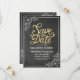 Save The Date / Wedding Invitation Card Templates - Elegant Gold Script and White Floral Frame on Grunge Black Chalkboard Background.