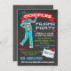 Chalkboard Couples Pajama Party Invitations Super cute for an engagement or dating party is for adults that have a pajama theme. Features pj's and fun fonts and banners all on a chalkboard background. Hand drawn illustration by McBooboo's.
