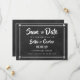 Personalise with your names and details on this cool chalkboard save the date card featuring cute cupids.