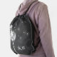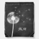 A fluffy dandelion on a chalkboard background decorates this drawstring backpack.