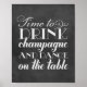 Bring rustic charm to the party with this "Time to Drink Champagne and Dance on the Table" sign featuring art deco–inspired typography in white on a textured chalkboard background. A fun, eye-catching accent for your bar or dance floor that blends vintage flair with a playful celebration vibe. All text is fully customizable.