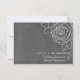A wedding r.s.v.p. featuring an illustration of a rose at right over a background of chalkboard on front. Personalize the text on front and back.