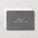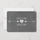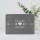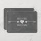 A wedding save the date featuring an illustration of a heart between two arrows. Background is chalkboard inspired. Text is white.