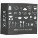 Chalkboard bridal shower recipe book featuring a black chalkboard background with white sketched kitchen tools.
