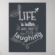 Modern "Life is better when you're laughing wall art print featuring contemporary typography adorned with design elements set on a stylish black chalkboard background. Dress up your home with some inspirational thoughts!