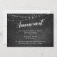 Over a background depicting a textured black chalkboard surface, I've placed graphics depicting light strings draped along the top. The word "Announcement" on the front and "Love" on the back were created using a modern, swirling script font. Use the template fields to add your personal details and make this distinctive design your own. Please reach out with any special requests or for customizing assistance. // 73 //