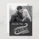 Chalkboard images are popular, and this Save the Date Wedding card is especially elegant. Your photograph (black and white or color) is at the top, with a pretty chalkboard scroll design which frames the word LOVE. The back of the card has plenty of room for your custom text in black and gray.