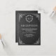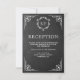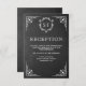 Elegant reception card featuring an elegant white ornate border and beautiful monogram against a chalkboard background.