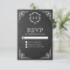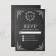 Elegant RSVP card featuring an elegant white ornate border and beautiful monogram against a chalkboard background.