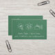 A green chalkboard texture background business card for teachers, substitute teachers and tutors who specialise in teaching physics science. It has doodles of physics elements like a light bulb to symbolise energy, an atom in motion and the refraction of light through a glass prism. On the reverse is space of indication of your credentials, fees or more details.