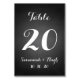 Elegant White Script Wedding Table Number Card | Chalkboard. Elke Clarke© for MonogramGallery at Zazzle. Printed black chalkboard photo effect. Add your table number and then add an order of "1" to your cart. Then repeat by adding the number "2" to the card and then add an order of "1" to your cart and repeat until you have one card with each of your table numbers in your cart.