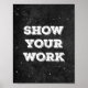 Decorate your classroom with this bold, stylish poster. This is a fantastic poster to hang in a classroom related to math, science, chemistry, physics, etc. Students will immediately know that they are expected to show their work when they see this poster hanging on your classroom wall. This poster features bold white text that reads "SHOW YOUR WORK" on a popular black and white chalkboard background. This poster is available on a variety of paper types and in several sizes to suit your needs. Not a teacher? No problem! This poster would make a fabulous gift for your child's teacher, or for your friends who are teachers! Teacher appreciation week always occurs during the month of May, and it is a great time of the year to show a teacher how much you appreciate all their hard work! What better way to do that than by giving them this great product?