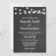 Chalkboard String Lights Wedding Invitation. Black and White Chalkboard Background. String Lights. For further customization, please click the "Customize it" button and use our design tool to modify this template.