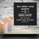 Embrace the beauty of this canvas wall art in chalkboard style with the inspiring Bible verse from Hebrews 6:19, which says, "We have this hope as an anchor for the soul, firm and secure." This verse serves as a reminder of the unwavering hope and strength found in faith, providing comfort and encouragement in challenging times.
