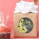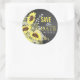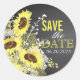 Chalkboard and sunflower bouquet rustic wedding save the date label.