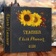 Binder featuring happy sunflowers on a chalkboard black background. Perfect for a teacher and customizable for any other purpose.