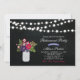Celebrate your special day with this stylish invitation template. This design features string lights, mason jar & flower bouquet with a chalkboard background.