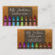 Gold faux glitter sparkles behind an array of colorful crayons laid out in a rainbow pattern. Easily update the name, job title, and contact info on front and back. Chalkboard script and fonts are used to mimic a teacher's classroom. Available in many other sparkly colors.