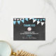 Lovely thank you note cards for a sports letters BASEBALL baby shower party for boy. Chalkboard background with hanging bunt flags. Blue turquoise and white colors. BACK OF CARD is white - so you can add an additional handwritten personal note / message!