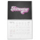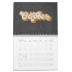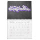 Chalkboard Typography months with a 70s bubble script font with patterned colored shadows. Each month has a different color and pattern. Text only. Personalize this by picking the holidays and years.